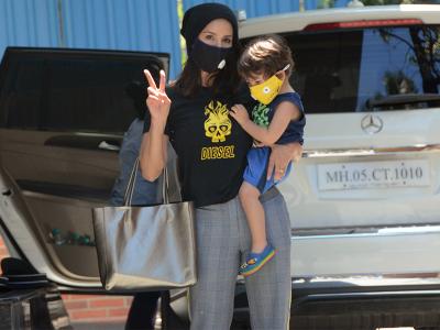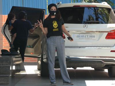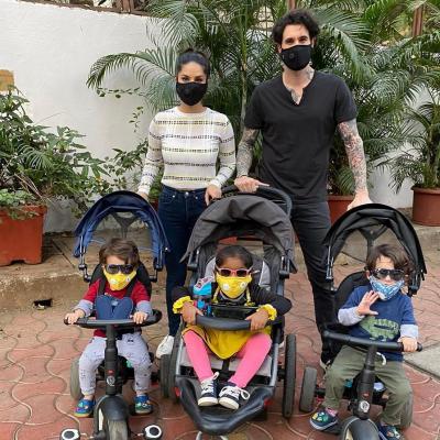 कोरोना व्हायरसच्या भीतीमुळे सनीने व तिच्या मुलांनी चेहऱ्यावर मास्क लावले होते. देशभरात कोरोना व्हायरसच्या वाढत्या प्रादुर्भावामुळे सगळेच जण काळजी घेत आहेत.