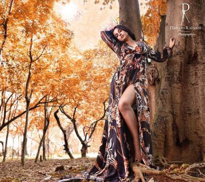 डब्बूच्या कॅलेंडरवर विद्याचा स्टायलिश अवतार दिसणार आहे. ब्लॅक प्रिंटेड साईड स्लिट गाऊनमध्ये तिने ग्लॅमरस पोज दिल्या आहेत.