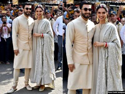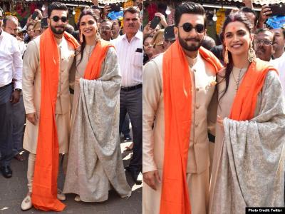 रणवीर व दीपिका दोघेही पारंपरिक पोशाखात सिद्धिविनायक मंदिरात पोहोचले.