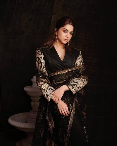 आलिया भट काळ्या रंगाची साडी नेसून आली होती. साडीत ती खूपच सुंदर दिसत होती.