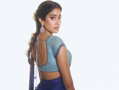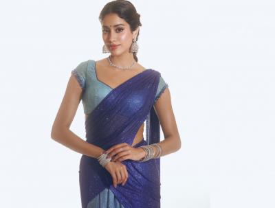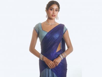 नुकतंच जान्हवीने तिच्या सोशल मीडियावर निळ्या रंगाच्या सुंदर साडीमधील काही फोटो शेअर केले आहेत.