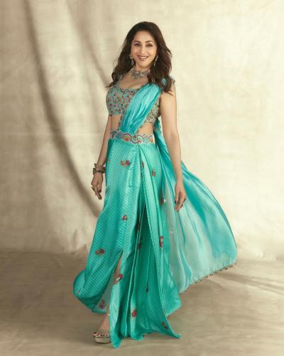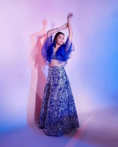 माधुरी दीक्षितने निळ्या रंगाच्या लेहंग्यात फोटोशूट केले आहे.