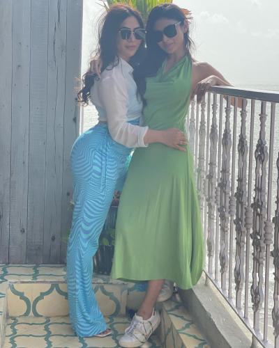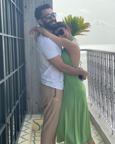 या फोटोंमध्ये मौनीने पोपटी रंगाचा बॅकलेस ड्रेस घातलेला दिसत आहे. (फोटो: इंस्टाग्राम)