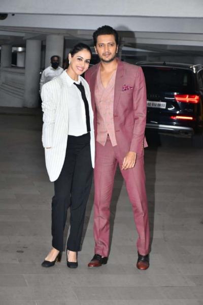 रितेश देशमुख व जेनेलिया डिसूजा हेही या पार्टीला हजर होते. यावेळी जेनेलियाच्या सिंपल लूकने सर्वांचं लक्ष वेधून घेतलं.
