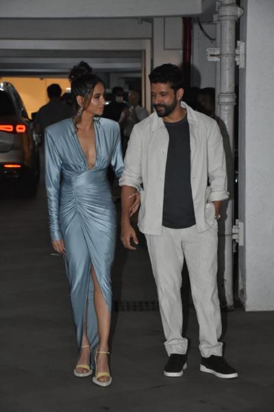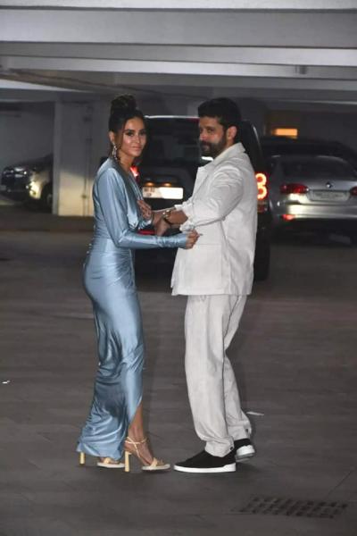 फरहान व शिबानी या पार्टीचे स्टार होते. यावेळी शिबानी हाय स्लिट ड्रेसमध्ये दिसली. तर फरहान नेहमीप्रमाणे कॅज्युअल लुकमध्ये दिसला.