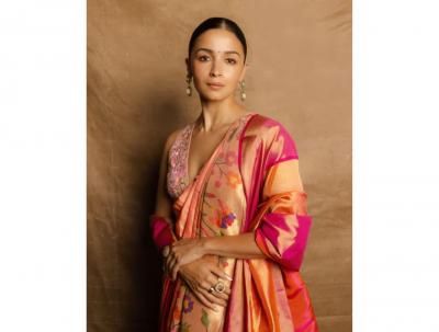 आलिया भटने पीच आणि पिंक शेड्समध्ये पैठणी साडीला एक नवीन आणि आकर्षक लुक दिला आहे. मिनिमल स्टाइलिंगमुळे आलियाची की खास स्टाइल खूपच फ्रेश वाटतेय.