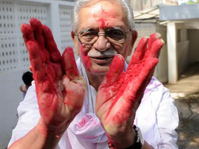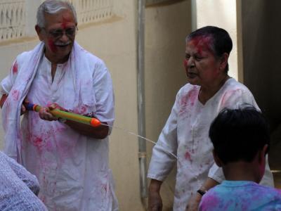 सर्वत्र होळीचा माहोल असतांना गुलजार आणि राखी हे होळीच्या विविध रंगात होली सेलिब्रेशन करत होते. सेलिब्रिटी दुनियेच्या झगमगाटापासून एकदम दूर त्यांचं वेगळंच विश्व असल्याप्रमाणे त्यांनी अत्यंत साधेपणाने आणि आनंदाने होळी साजरी केली. हे फोटो पाहा, तुम्हाला येईलच अंदाज....