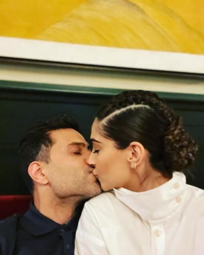 सोनम कपूरने पती आनंदला किस करताना फोटो शेअर करत न्यू ईअर विश केले.