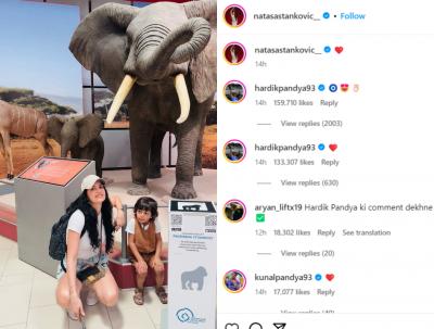 हार्दिकसोबत कुणाल पांड्यानेदेखील रेड हार्ट एमोजी कमेंट केली आहे. हार्दिकच्या कमेंटवर लोकांनी विविध प्रतिक्रिया दिल्या आहेत.