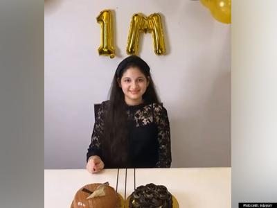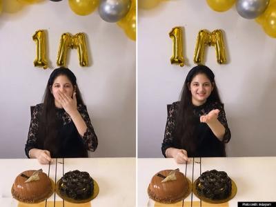 या फोटोत हर्षाली मल्होत्रा इंस्टाग्रामवर १० लाख फॉलोव्हर्स झाल्याच्या निमित्ताने सेलिब्रेशन करताना दिसते आहे.