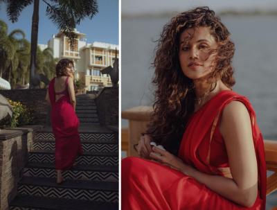 'हसीन दिलरुबा' तापसी पन्नूचं लाल साडीत बोल्ड फोटोशूट, फोटो चर्चेत