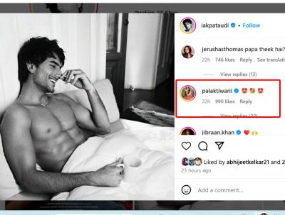 या फोटोवर रुमर्ड गर्लफ्रेंड पलक तिवारीने कमेंट केली आहे. तिच्या या कमेंटने सगळ्यांचं लक्ष वेधून घेतलं आहे.