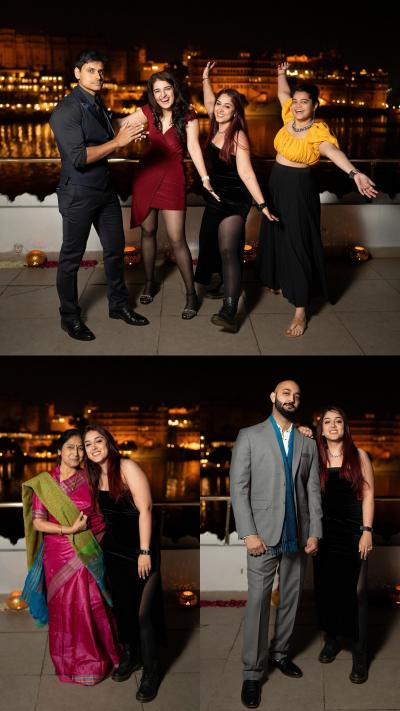 हे फोटो उदयपूरच्या ताज हॉटेल पॅलेसमध्ये आयरा खानच्या नाईट फंक्शनची आहेत. या खास प्रसंगासाठी, आयराने ऑफ शोल्डर थाई स्लिट वन पीस घातला होता. काळ्या नेकलेस आणि स्टडसह तिने हा लूक पूर्ण केला. नुपूर शिखरे काळ्या रंगाच्या सूटमध्ये दिसली.