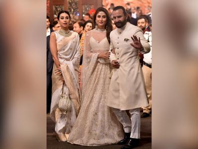 करीना, करिश्मा आणि सैफ अली खान यांनी पांढऱ्या रंगाचा पोशाख परिधान केला होता.