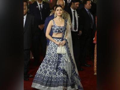 अभिनेत्री आलिया भट्टनं ईशा-आनंदच्या लग्नात ब्लू अँड व्हाइट रंगाचा लहंगा परिधान केला होता.