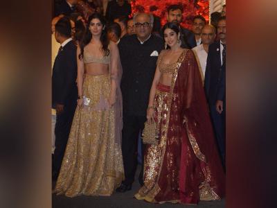 जाह्नवी आणि खुशी कपूर वडील बोनी कपूर यांच्यासोबत. स्टाइलिश लहंग्यामध्ये जाह्नवी-खुशी खूपच ग्लॅमरस दिसत होत्या.