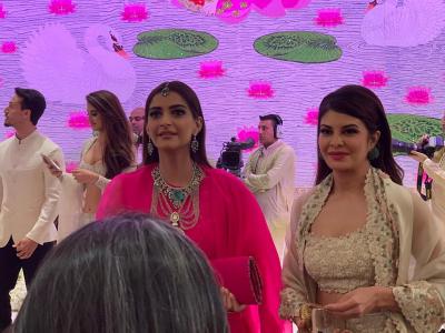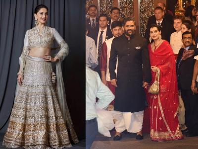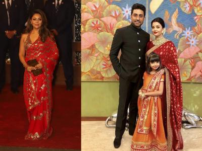 अभिषेक बच्चन पत्नी ऐश्वर्या आणि मुलीसहीत पोहोचला होता लग्नात. लाल रंगाच्या साडीमध्ये ऐश्वर्या अतिशय सुंदर दिसत होती.