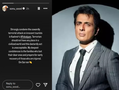 अभिनेता सोनू सूदनं (Sonu Sood on Pahalgam Terrorist Attack) इंस्टाग्रामवर एक स्टोरी पोस्ट करत भ्याड हल्ल्यावर संताप व्यक्त केला. तो म्हणाला, "काश्मीरच्या पहलगाममध्ये निष्पाप पर्यटकांवरील भ्याड दहशतवादी हल्ल्याचा मी तीव्र निषेध नोदंवतो. सुसंस्कृत जगात दहशतवादाला स्थान नसावं आणि हे भ्याड कृत्य अस्वीकार्य आहे. ज्या कुटुंबांनी आपले प्रियजन गमावलेत, त्यांच्याबद्दल मी मनापासून संवेदना व्यक्त करतो आणि जखमींना लवकरात लवकर बरं वाटावं, यासाठी मी प्रार्थना करतो", या शब्दात त्यानं आपल्या भावना व्यक्त केल्यात.