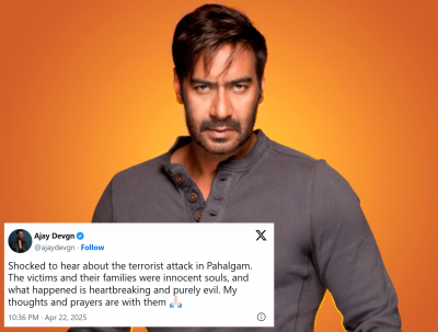 अभिनेता अजय देवगण (Ajay Devgn on Pahalgam Terrorist Attack) यानेही सोशल मीडियावर पोस्ट शेअर करत दहशतवादी हल्ल्या निषेध केला. तो म्हणाला, "पहलगाममधील दहशतवादी हल्ल्याची बातमी ऐकून खूप दुःख झालं आणि मोठा धक्का बसलाय. या घटनेचे बळी ठरलेले लोक आणि त्यांचे कुटुंबीय, ते सर्व निर्दोष होते. जे घडलं ते हृदयद्रावक आणि पूर्णपणे अमानवी आहे. माझ्या संवेदना आणि प्रार्थना त्यांच्यासोबत आहेत".