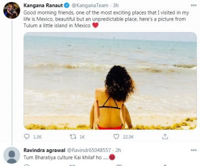 अशात कंगनाच्या या बिकीनी फोटोवरही काही लोकांनी कमेंट केल्या आहेत. काही लोक म्हणाले आहेत की, कंगना आपली संस्कृती विसरली आहे. त्यांना असं वाटतं की, जी कंगना सतत देशाच्या संस्कृतीबाबत बोलत असते तिने बिकीनीतील फोटो शेअर करू नये.