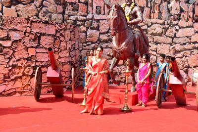 ट्रेलर लॉन्च इव्हेंटदरम्यान किल्लयाचा सेट उभारण्यात आला होता. शिवाजी महाराजांचा भव्य पुतळा, तोफा असे सगळे होते.