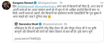 ट्विटमध्ये लिहिले होते की, शेतकऱ्यांना भटकवण्यासाठी प्रियांका आणि दिलजीतचं लेफ्ट मीडियाकडून कौतुक होईल. भारत विरोधी इंडस्ट्री त्याना ऑफर देतील. हा सिलसिला असाच चालत राहणार.