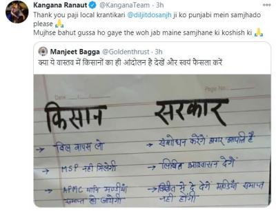 हीच पोस्ट शेअर करत कंगना रणौतने दिलजीतवर निशाणा साधला आहे. अभिनेत्रीने लिहिले की, पाजी तुमचे धन्यवाद. आता या लोकल क्रांतिकारी दिलजीतला सुद्धा कुणीतरी हे समजावून सांगा.