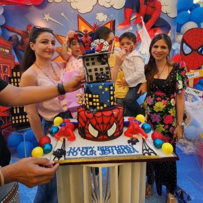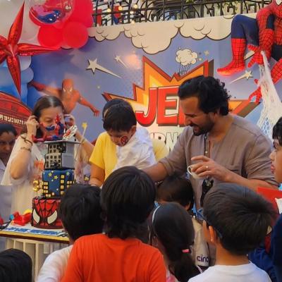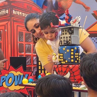जेहच्या तिसऱ्या बर्थडे खास स्पायडरमॅन थीम करण्यात आली होती. स्पायडरमॅनचा तीन थरांचा खास केक होता.