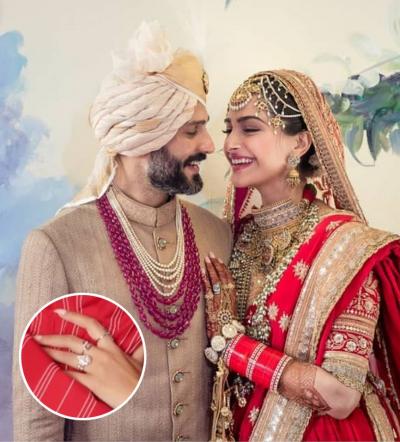 अभिनेत्री सोनम कपूरने दिल्लीत बिझनेसमन आनंद आहूजासोबत लग्न केले आहे. तिच्या रिंगची किंमत ९० लाख इतकी आहे.
