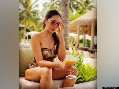 या फोटोत किम शर्माने गोल्डन रंगाच्या मोनोकनीमध्ये दिसते आहे. किम शर्माच्या गोल्डन ग्लॅमरस अंदाजात चाहत्यांना खूप भावते आहे.