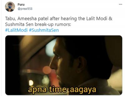 ललित मोदी कदाचित ब्रेकअपमुळे दु:खी असतील पण नेटकरी जोमात आहेत. ये तो सच है की भगवान है, अशा आशयाचं भन्नाट मीम सध्या व्हायरल होतंय.