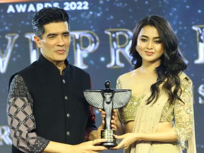 तेजस्वी प्रकाशला मोस्ट स्टायलिश इमर्जिंग आयकॉनचा पुरस्कार फॅशन डिझायनर मनीष मल्होत्राच्या हस्ते देण्यात आला.