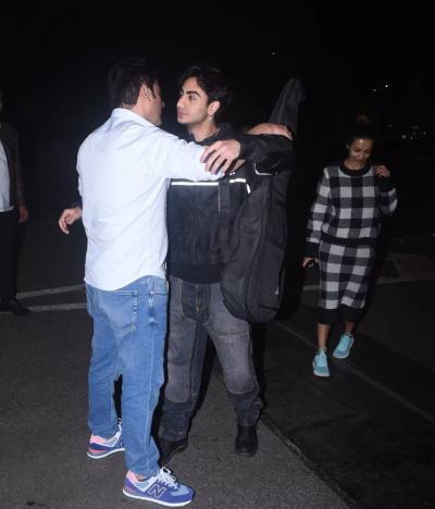 मलायका अरोरा आणि अरबाज खान यांनी लग्नाच्या 20 वर्षानंतर एकमेकांना घटस्फोट दिला. पण दोघेही मुलगा अरहानसाठी अनेकदा एकत्र दिसतात. अलीकडेच, दोघांचा एक व्हिडिओ-फोटो व्हायरल झाला होता, ज्यामध्ये ते त्यांचा मुलगा अरहानला विमानतळावर सोडण्यासाठी गेले होते. दोघांनी एकमेकांना मिठी मारली आणि मुलाला निरोप दिला. (Photo ViralBhayani)