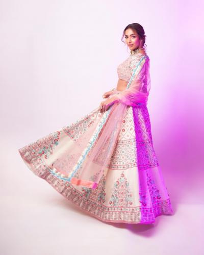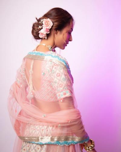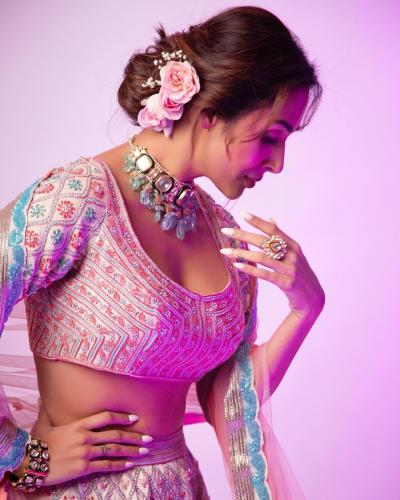 या फोटोंमध्ये मलायका अरोरा गुलाबी स्काय ब्लूच्या कॉम्बिनेशन लेहेंग्यात दिसत आहे. (फोटो: इंस्टाग्राम)
