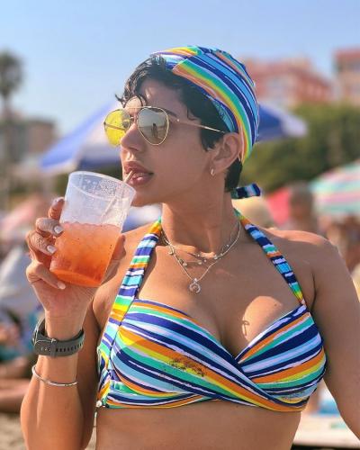 व्हायरल होत असलेल्या फोटोमध्ये मंदिराने मल्टीकलर बिकिनी परिधान केली आहे.