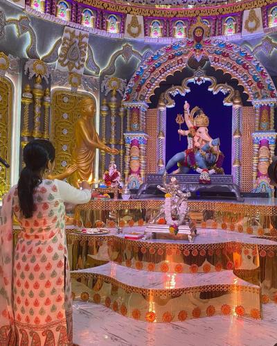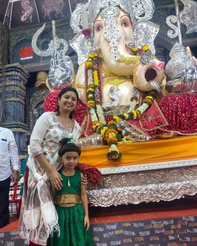 दरवर्षी गणेशाचं आगमन होताच प्राजक्ता पुण्यातील मानाच्या पाच गणपतींचं दर्शन घेते. यंदाही ती न चुकता बाप्पाच्या दर्शनासाठी पोहोचली.