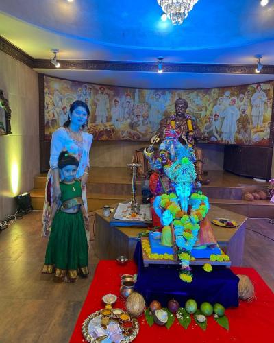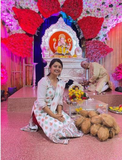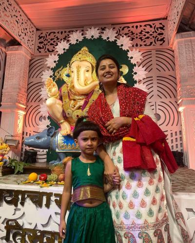 यंदाचे वर्ष हिंदूस्तानातील पहिल्या सार्वजनिक गणपतीची भाऊसाहेब रंगारी गणेशाची आरती करण्याचं पुण्य पदरात पडलं, असंही तिने लिहिलं.