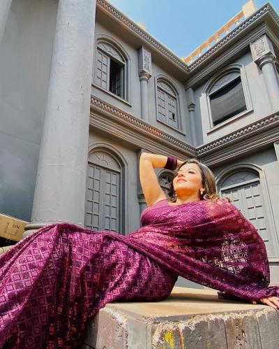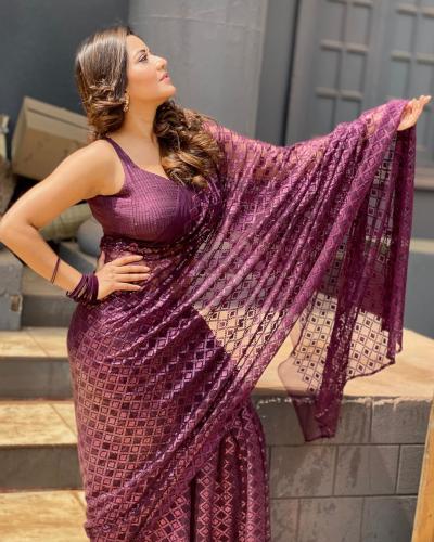 या जांभळया साडी मध्ये मोनालिसा खुपच मादक दिसत आहे.