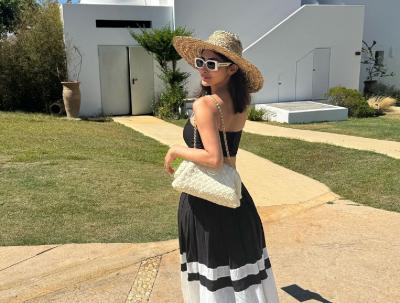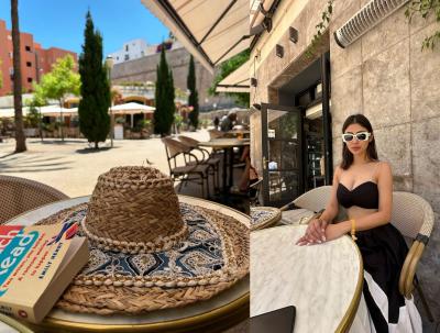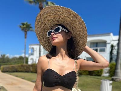 स्पेनमधील इजिबा टाउनमधील तिचे हे फोटो आहेत. फोटोंमध्ये मौनीने डोक्यावर मोठी टोपी घातलेली दिसत आहे.