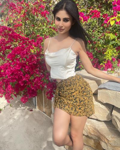 या फोटोंमध्ये मौनी रॉय व्हाइट टॉप आणि मिनी स्कर्ट घालून फोटोशूट करताना दिसत आहे. (फोटो: इंस्टाग्राम)