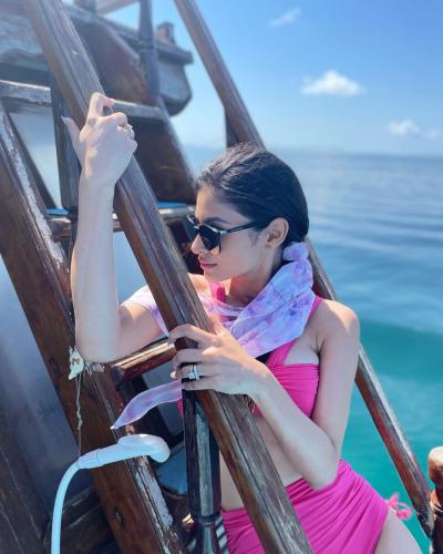 पिंक कलरच्या ब्रालेट, त्यावर श्रग आणि बिकिनीमध्ये मौनीनं एकापेक्षा एक बोल्ड पोझ दिल्या आहेत. तिच्या या फोटोंवर चाहत्यांनी लाईक्स आणि कमेंट्स वर्षाव केला आहे.