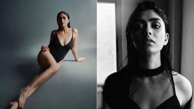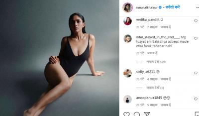 या फोटोमध्ये मृणालने काळ्या रंगाची मोनोकिनी परिधान केली आहे. मृणाल खाली बसली असून ती पोज देताना दिसत आहे.