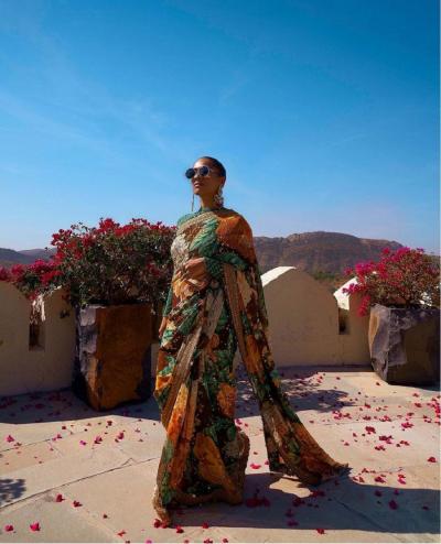 काही फोटोत घेरदार लेहंगा तर काही फोटोत फ्लोरल डिझाईनची साडी तिने नेसली आहे.