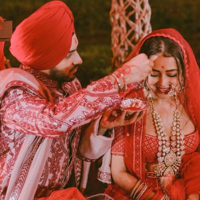या फोटोंमध्ये नेहा लाल रंगाच्या लेहंग्यात दिसत आहे. रोहनप्रीत तिच्या गळ्यात मंगळसूत्र बांधत आहे आणि नेहा त्याच्याकडे प्रेमाच्या नजरेने बघत आहे. दुसऱ्या फोटोत रोहनप्रीत नेहाची भांगेत कुंकू भरत आहे.