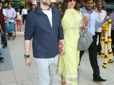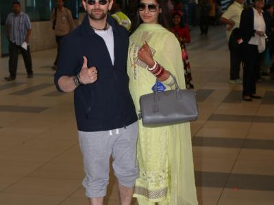 Neil Nitin mukesh with wife at the domestic airport