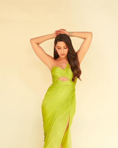 ग्रीन कलरच्या गाउनमध्ये नोरा फतेहीनं फ्लॉन्ट केली टोन्ड फिगर, फोटो झाले व्हायरल