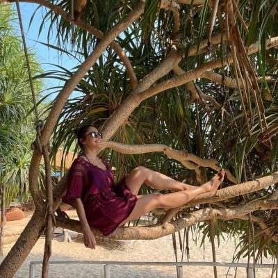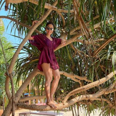 या फोटोशूटमध्ये नुसरत भरूचा एका झाडावर चढून पोज देताना दिसते आहे. (Photo Instagram)