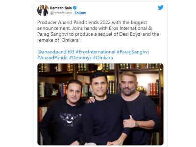 विशाल भारद्वाजच्या "ओंकारा" आणि "देसी बॉईज" या हिट चित्रपटांच्या सिक्वेलची निर्मिती इरॉस एंटरटेनमेंट आणि चित्रपट निर्माता पराग सांघवी मिळून करणार असल्याचे चित्रपट निर्माते आनंद पंडित यांनी सांगितले.