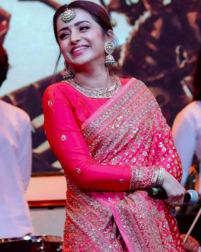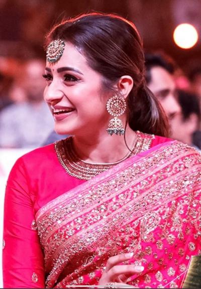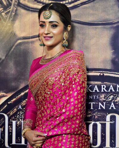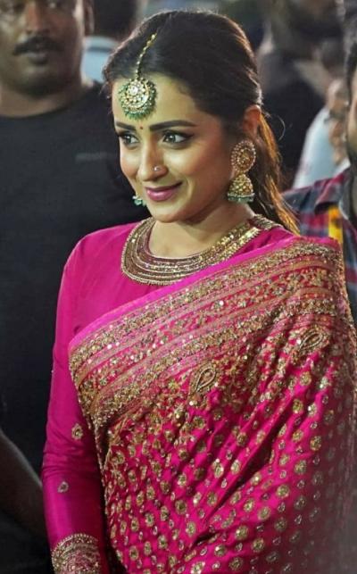 तृषाने या इव्हेंटमध्ये गुलाबी रंगाची हेवी वर्कची साडी परिधान केली होती. या साडीत ती कमालीची सुंदर दिसत होती.