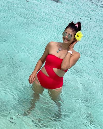 फोटोमध्ये ती स्विमसूट घालून समुद्राकाठी निवांत क्षण एन्जॉय करताना दिसते.